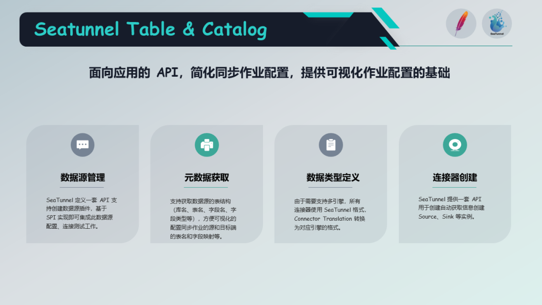 对于 Spark 引擎,它支持微批处理模式,并提供了 Checkpoint 机制以支持聚合提交的特性。Apache SeaTunnel 提供了一套数据同步引擎,专为数据同步场景设计,为没有大数据环境的企业提供了选择的机会。