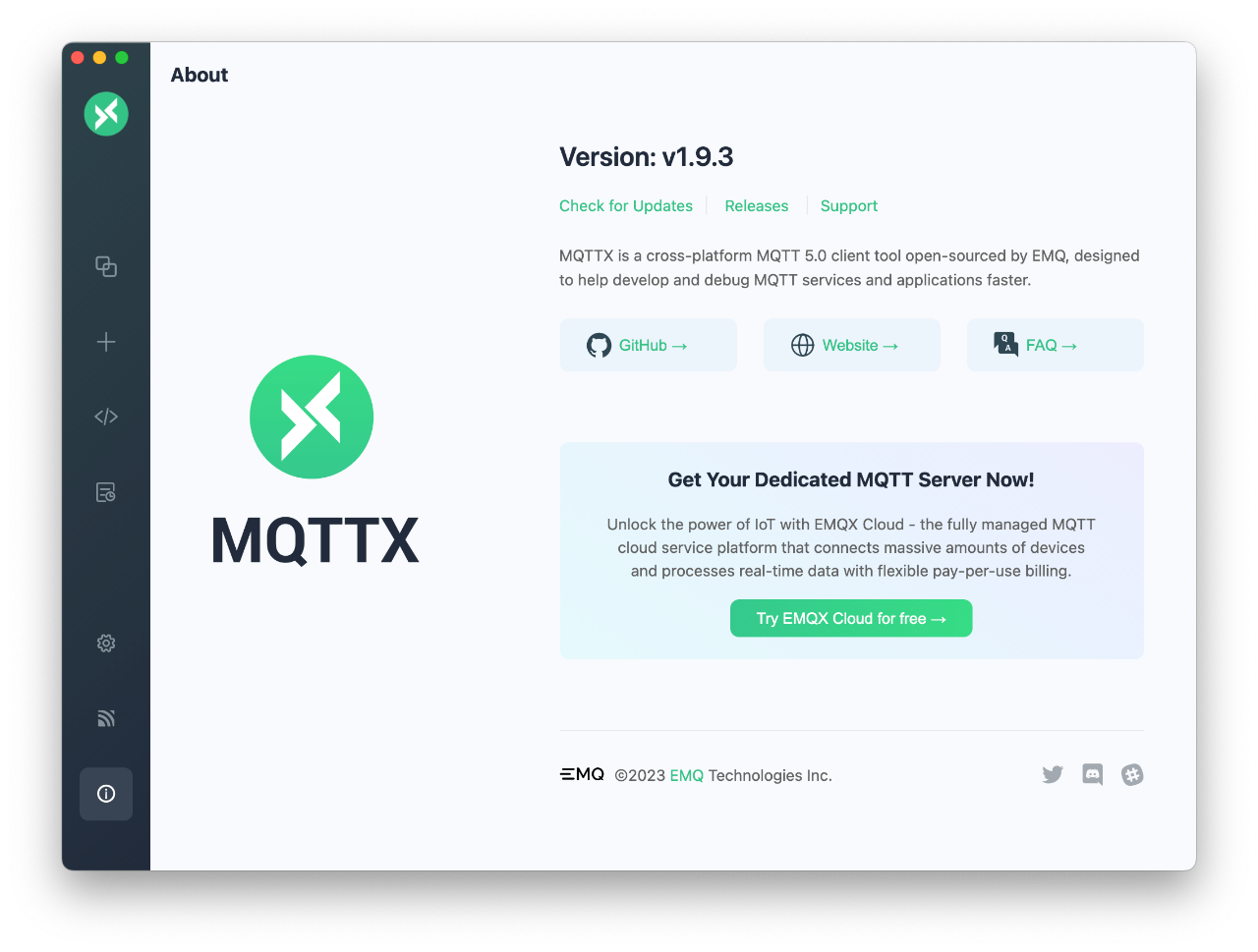 最新版本下载地址:https://github.com/emqx/MQTTX/releases/tag/v1.9.3