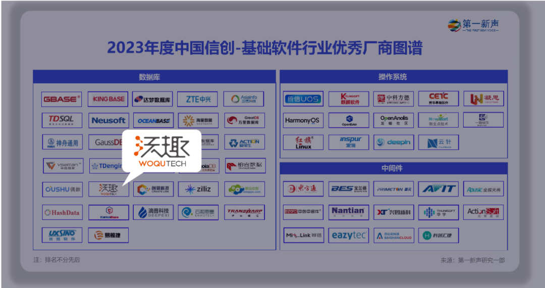 沃趣科技作为国内领先的自主核心数据库云生态厂商,入选《2023年中国信创产业研究报告》——“2023年度中国信创-基础软件行业代表厂商图谱”,并荣膺2023年中国最佳信创数据库厂商。再次体现了专业机构与业界对沃趣科技在信创领域中技术实力与创新能力的认可。