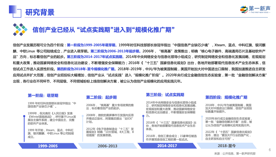 该报告启动初期,第一新声即面向广大行业从业者开启了报告研究与调研工作,面向大量企业高管进行了深入的访谈与调研,深入研究各细分场景下信创公司的业务模式、机会及优秀服务商,并形成最终版报告内容。