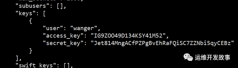 radosgw-admin user create --uid="wanger" --display-name="wanger"