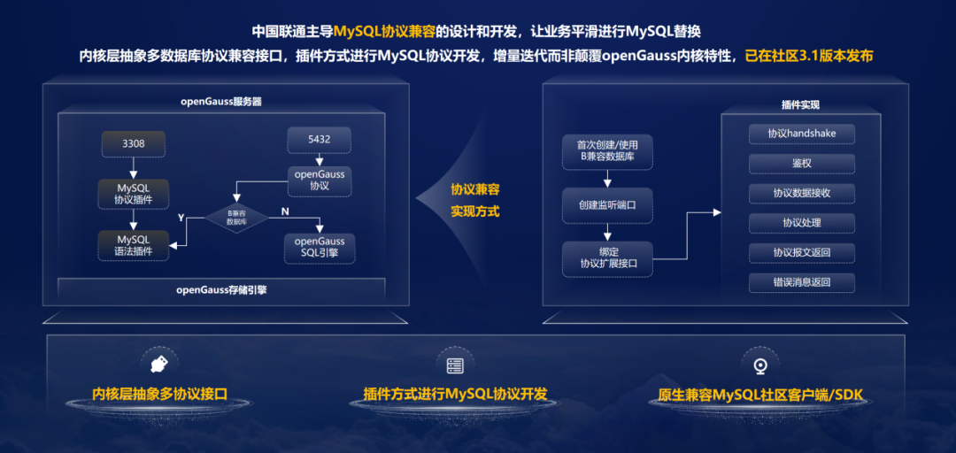 CUDB完善了异构数据库生态兼容,并且深度参与社区合作,在社区提出并主导了MySQL协议兼容功能开发,参与了MySQL语法兼容开发,完成35个语法兼容点,相关代码已经贡献至社区。