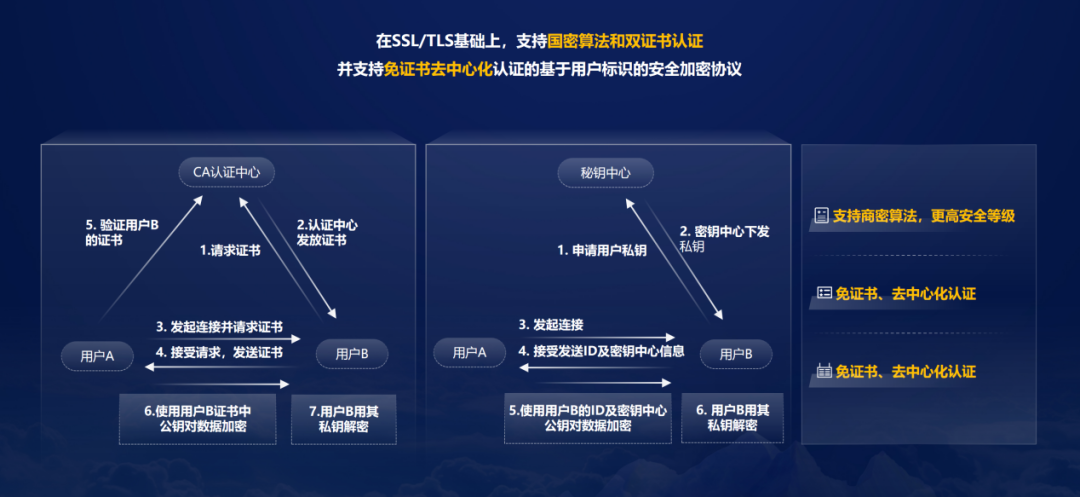 CUDB还对内核语法及安全功能做了增强,支持insert all、insert all when、insert first when、with function、REGEXP_COUNT、REGEXP_INSTR函数等语法,支持审计告警、标记访问、TLCP加密协议、onlineDDL等功能,能满足数据库的高安全需求。