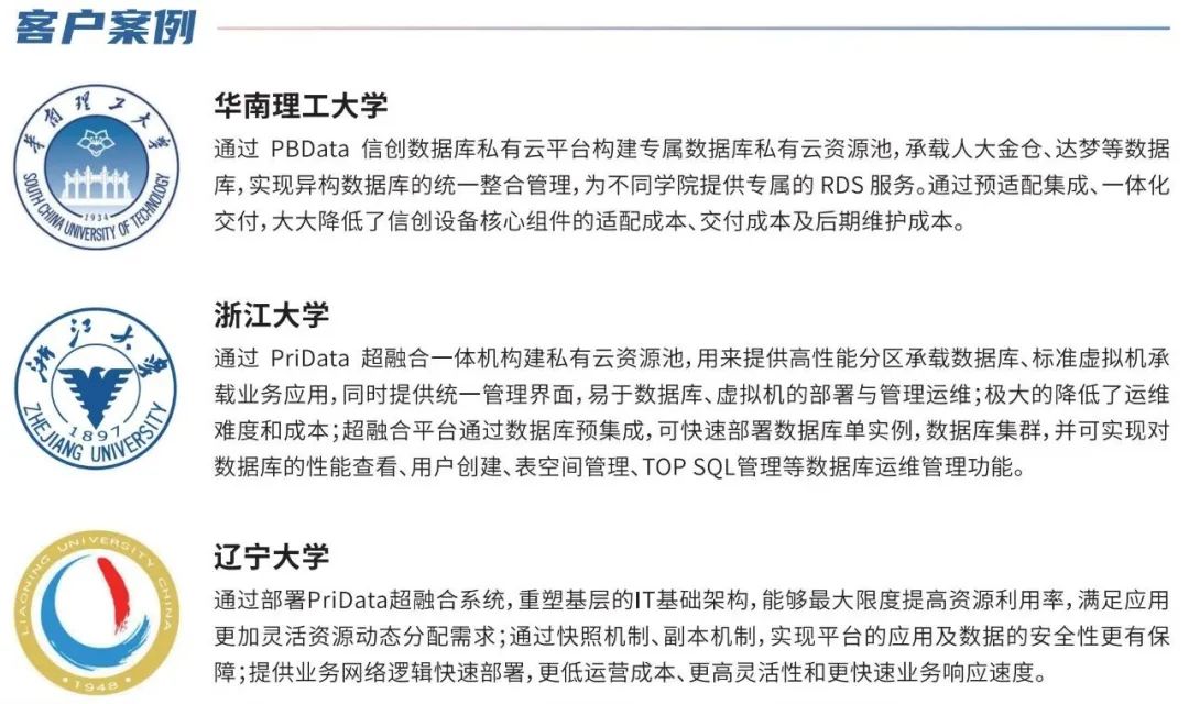 天玑科技自主研发的PBData、PhegData、PriData系列产品在教育信息化领域的多个环节高效实现了顶层设计、核心数据维护、打通数据孤岛等成果,获得了包括华南理工大学、浙江大学、辽宁大学等在内的多个高校客户的肯定与好评。