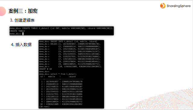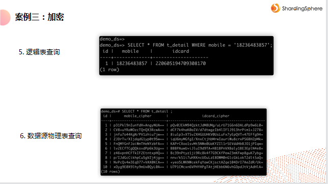 ShardingSphere 提供了强悍的数据加密能力,通过逻辑列、密文列、明文列和查询辅助列的组合,实现对业务影响最小、用户体验友好的数据加密体验。