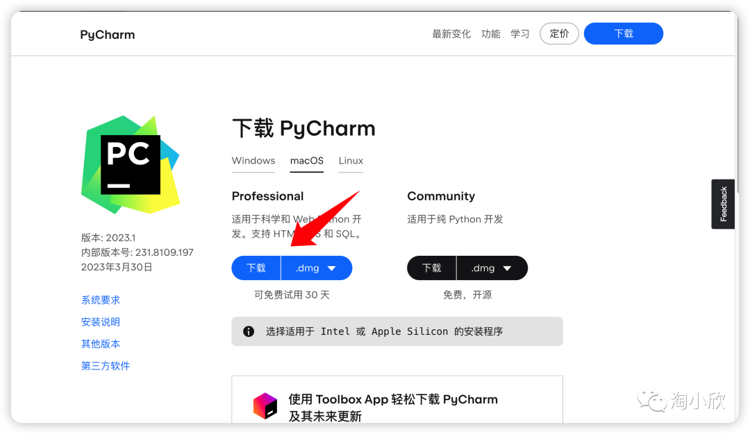 选择你对应的平台下载专业版,我这里是Mac,所以选择Mac