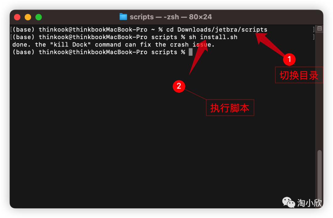 cd Downloads/jetbra/scripts # 切换你的脚本目录sh install.sh # 执行脚本
