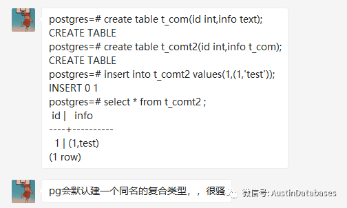 今天好好弄明白,PG的特性Composite Types,之前是知道这个特性的,这个特性就是通过create type的方式自己建立一个属于自己的数据类型(组合).