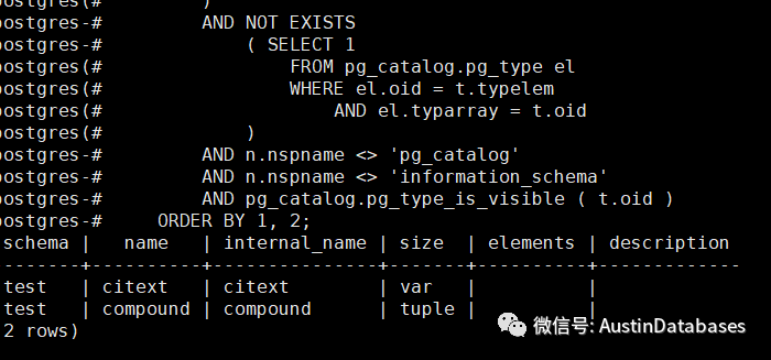 通过下面的语句可以看到你的数据库中到底有没有composite的类型以及他的名字