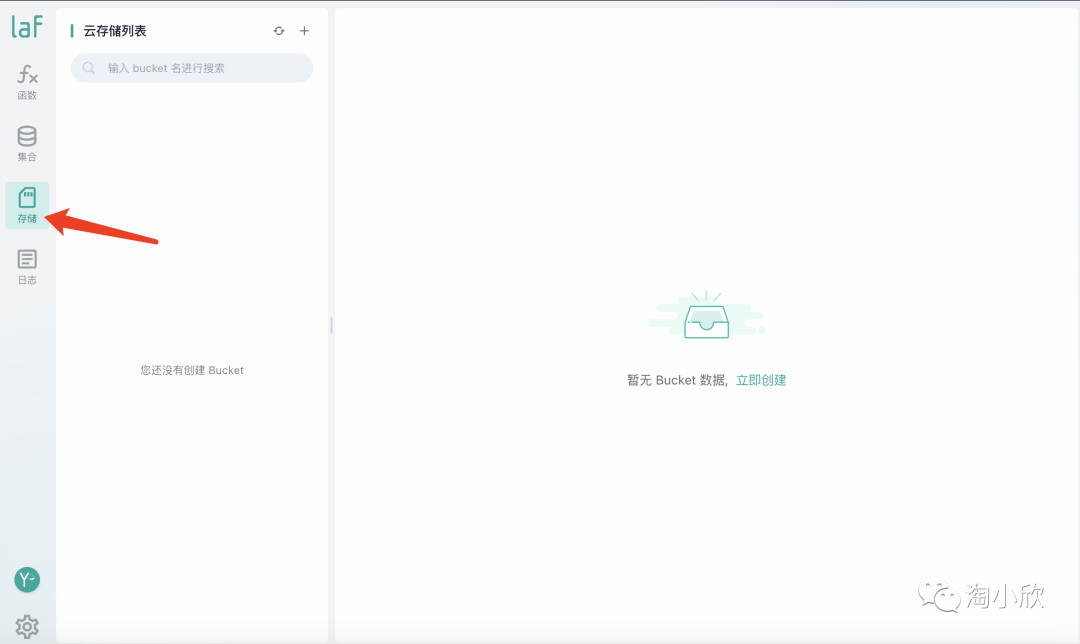 npm run build然后继续打开你的 Laf,点击存储界面 --> 点击上方加号 --> 创建一个权限为 readonly 的存储桶(名字随意)。