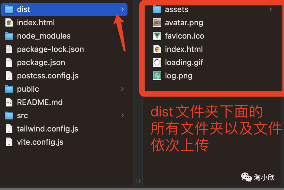 继续上传刚刚打包生成的文件夹`ChatGPT-main/dist ,将文件和文件夹挨个上传.