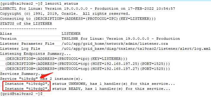 如此一来,SCAN监听就知道了有2个实例可以提供服务,并且知道了两个实例的服务的监听地址是多少。
