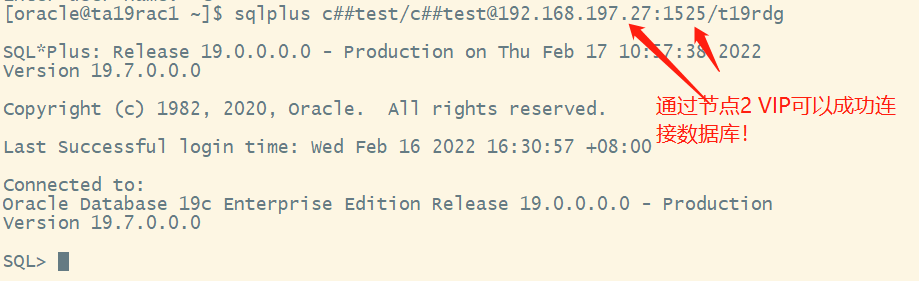 因此,应用通过修改数据库的连接串,改为连接节点2的VIP地址即27,可以成功连接DB。但不解决该问题,通过SCAN IP连接数据库就无法实现了。