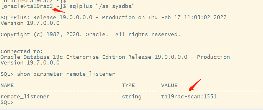 两个节点检查remote_listener参数,如下图所示: