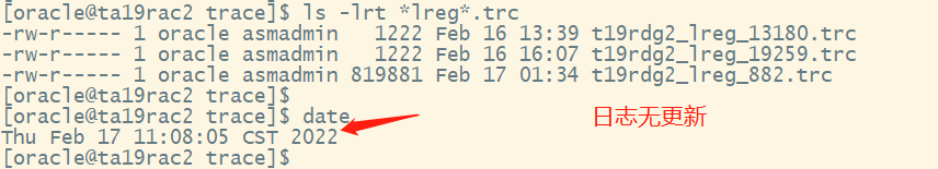 上图表示LREG进程没有继续更新。