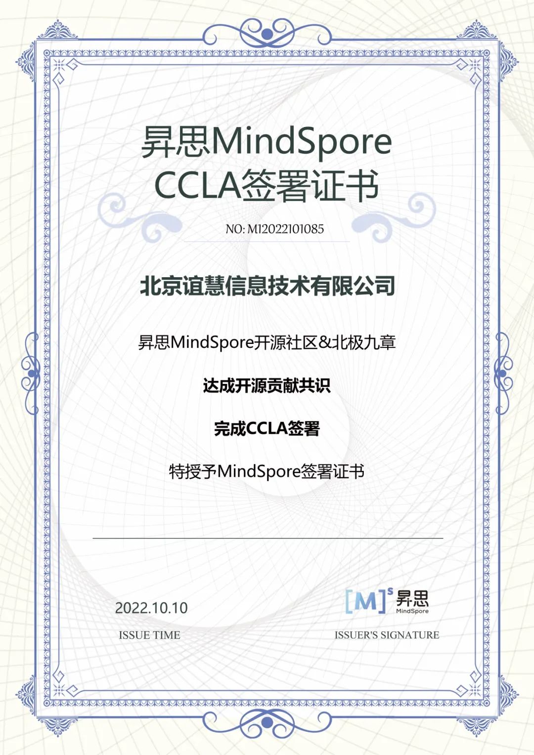 近日,北极九章签署CCLA(Corporate Contributor License Agreement,企业贡献者许可协议书),正式加入昇思MindSpore开源社区。