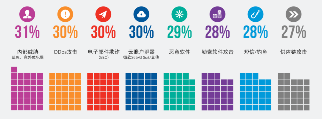 CISO们对于缺乏可见性的潜在威胁始终保持着最大的担忧。工作模式的调整、对云的依赖的增加使得对威胁进行排名和建立足够的防御变得异常困难。尽管组织需要保持对各类威胁的警惕,但是当安全团队不确定下一次攻击来自何处时,几乎不可能在最需要的地方进行保护和培训。▌人为错误造成风险