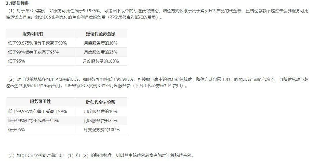 而按照本次事故的时间来计算,可用性大概是 98% 左右了,也就是说基本可以获得的赔偿是月度服务费的 25%。
