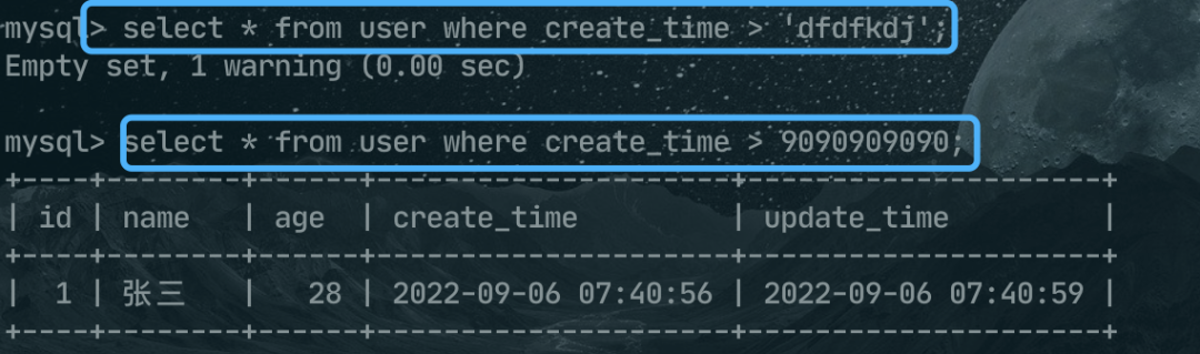 再用两条 SQL 看一下字符串到整数类型转换的规则。