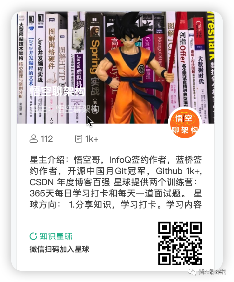 欢迎加入悟空的私有技术星球,提供技术专栏:SpringCloud 源码剖析、SpringCloud 微服务实战项目等。(下方扫码加入)