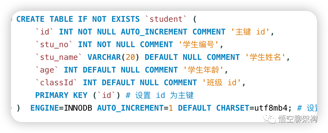 # id 不为空,自增长主键,自动添加聚簇索引
