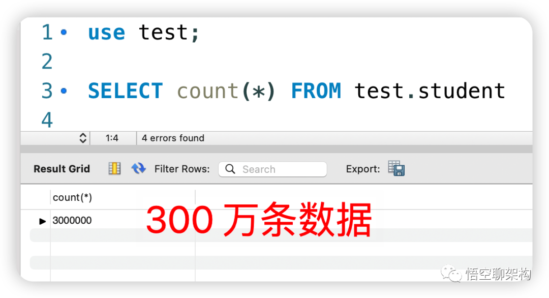 现在表创建好了,就需要往表里面插入大量数据了,这里我就直接用写好的脚本插入 300 万数据。