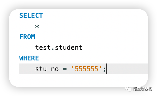 这条记录是从记录的第一行开始,一行一行扫描,看下哪条记录的stu_no = '555555'
