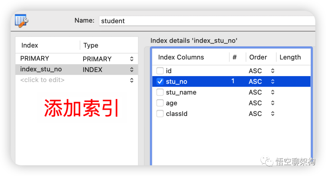 ADD INDEX `index_stu_no` (`stu_no` ASC) VISIBLE;