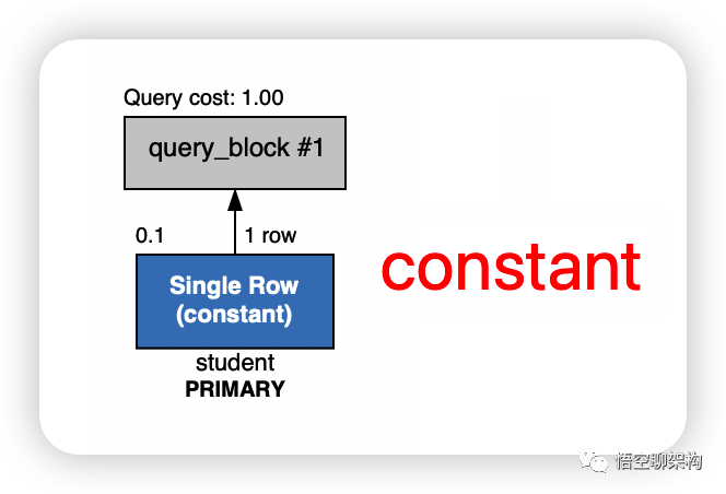 执行计划中可以看到是直接用的 constant 方式,说明查询直接找到了那条记录,速度是非常快的。