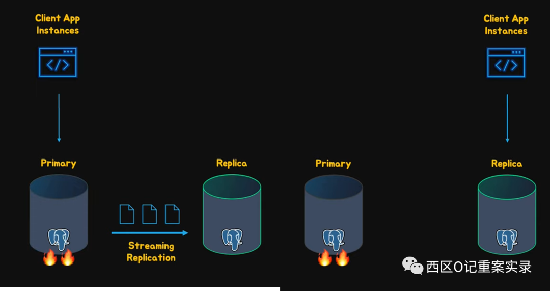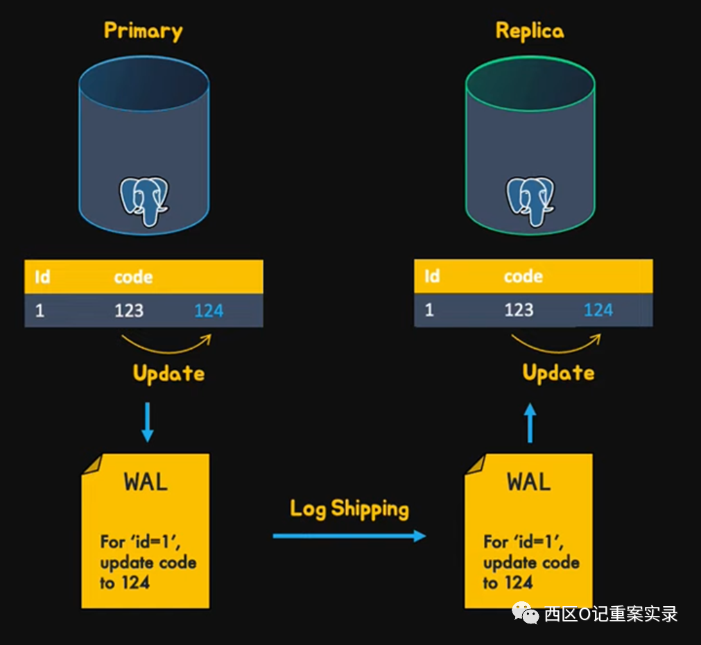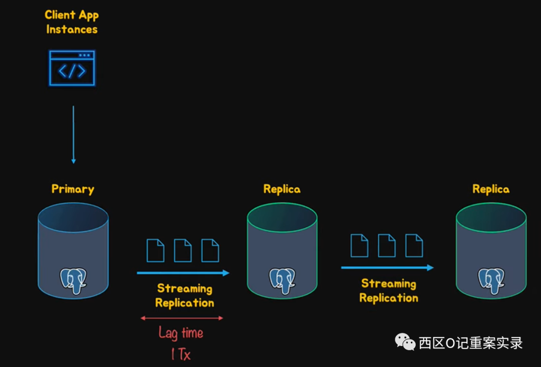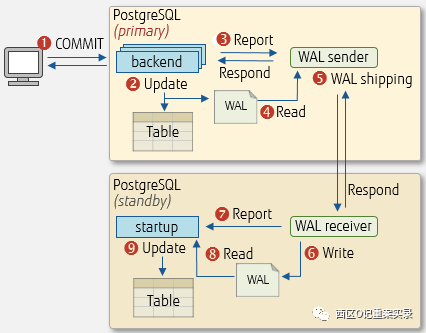 PostgreSQL 将主服务器的更新信息保存为称为预写日志或 WAL 的事务日志,以准备崩溃恢复或回滚。流复制的工作原理是将WAL 实时传输或运送到备用服务器,并将其应用到备用服务器上。