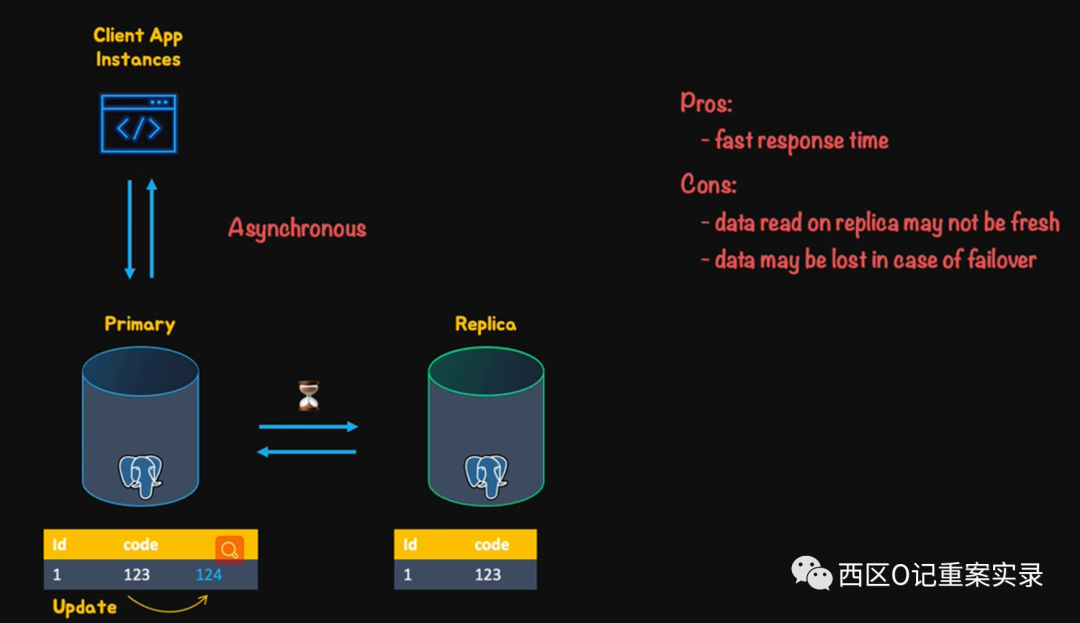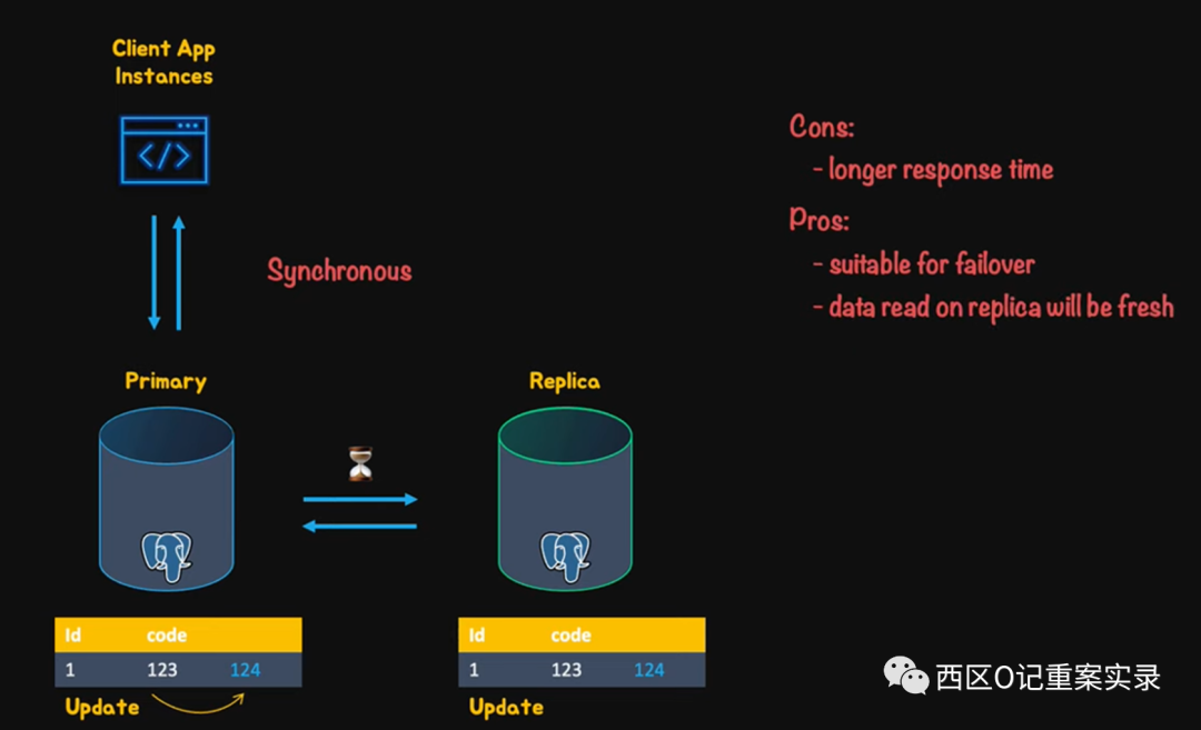 同步复制和异步复制的区别是在主服务器上完成处理之前是否等待备用服务器的响应。根据您的操作选择配置,因为这会影响 SQL 处理的响应时间和高可用性。