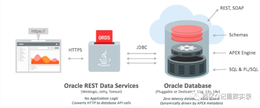 3 . Apex前端就是浏览器 ,URI到了ORDS,它提供基于Restful的web服务,业务逻辑和HTML效果都在数据库生产,ORDS用JDBC获取,返回前端。你仿佛是访问了一个数据库Web服务器感觉