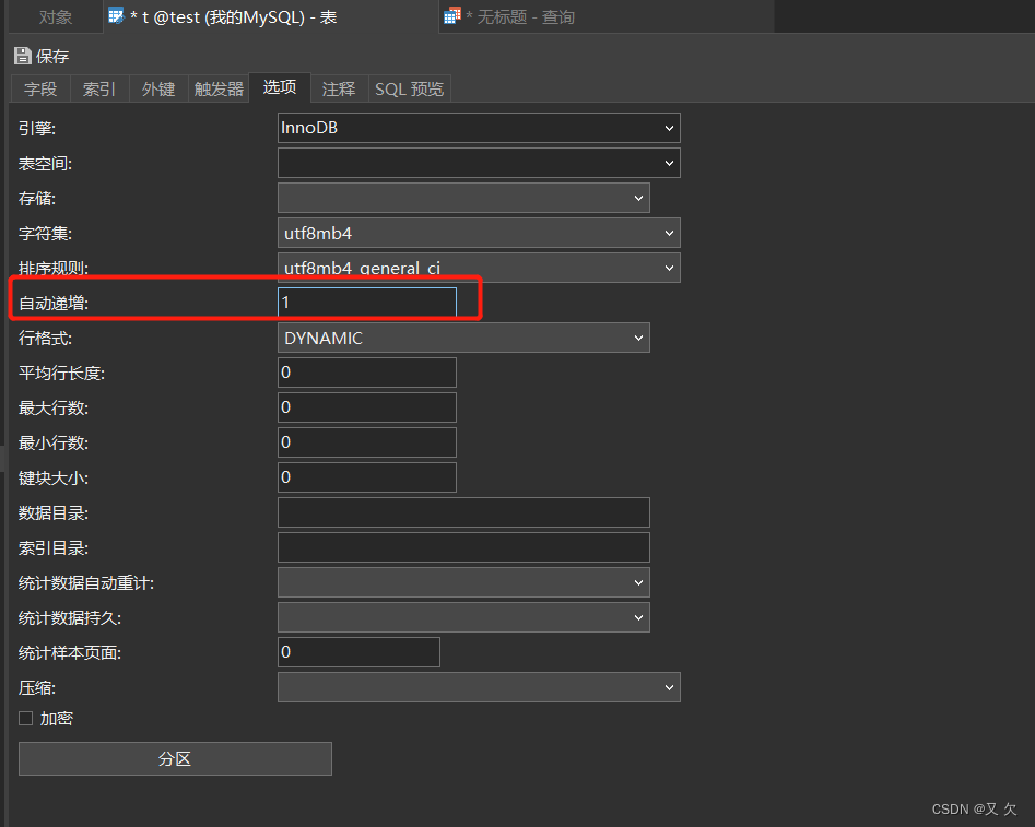 可以通过看表详情查看当前自增值,以及查看表参数详情AUTO_INCREMENT
