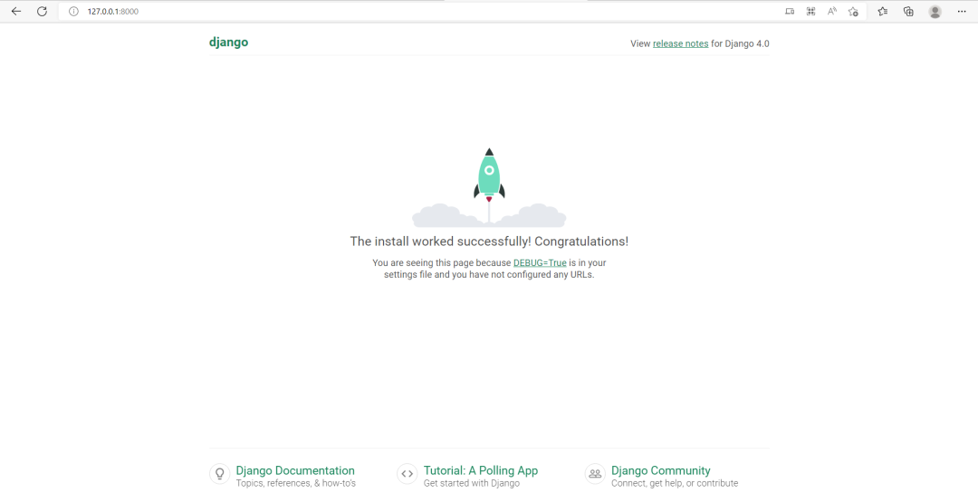 此时访问http://127.0.0.1:8000/应该可以看到如下欢迎页面