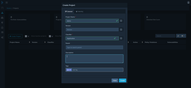 首先创建一个项目,Classifier支持应用、容器、操作系统、框架等多种类型,示例选择Application。