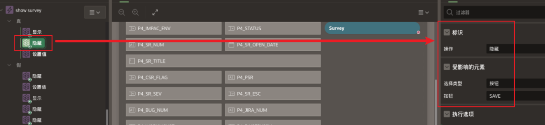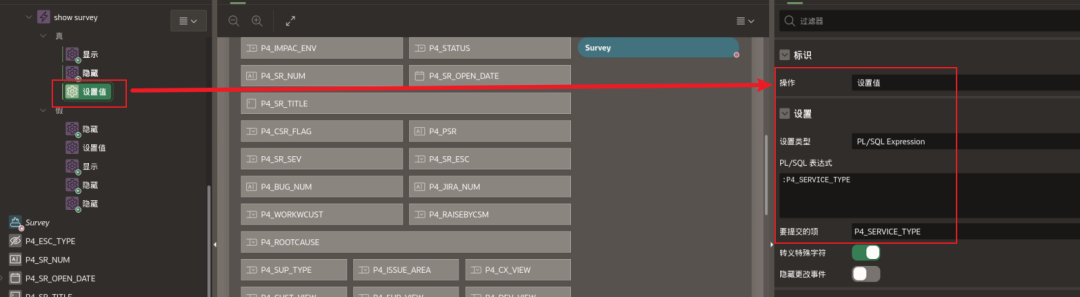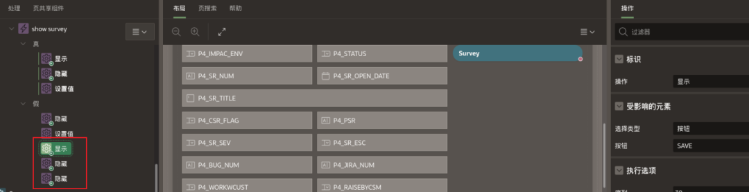 判断条件为:如果status=“Closed”为真,则把service_type的值赋给P4_OCI_CHECK。并把SAVE按钮隐藏起来。