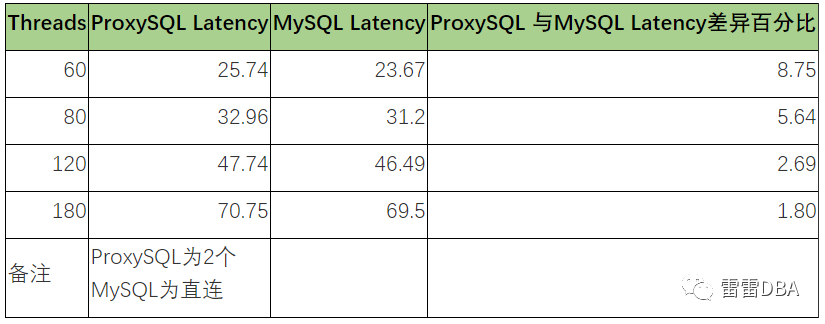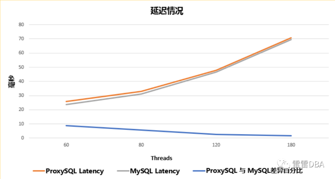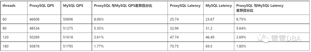 线程数越多,ProxySQL QPS损失越少,延迟增加越少