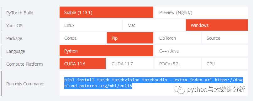 2、登陆pytorch网站,选择合适自己的pytorch安装包