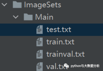 完成后在ImageSets/Main目录下创建了四个文件,里面包含了图片文件名