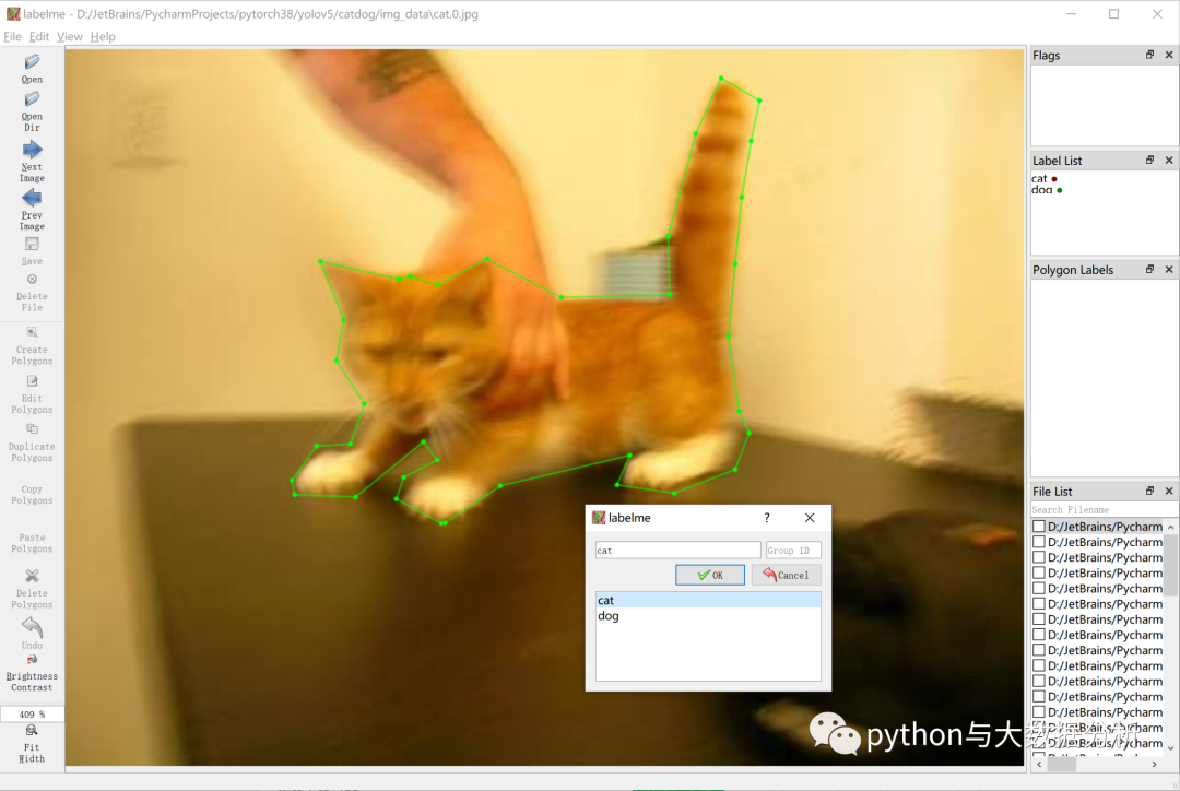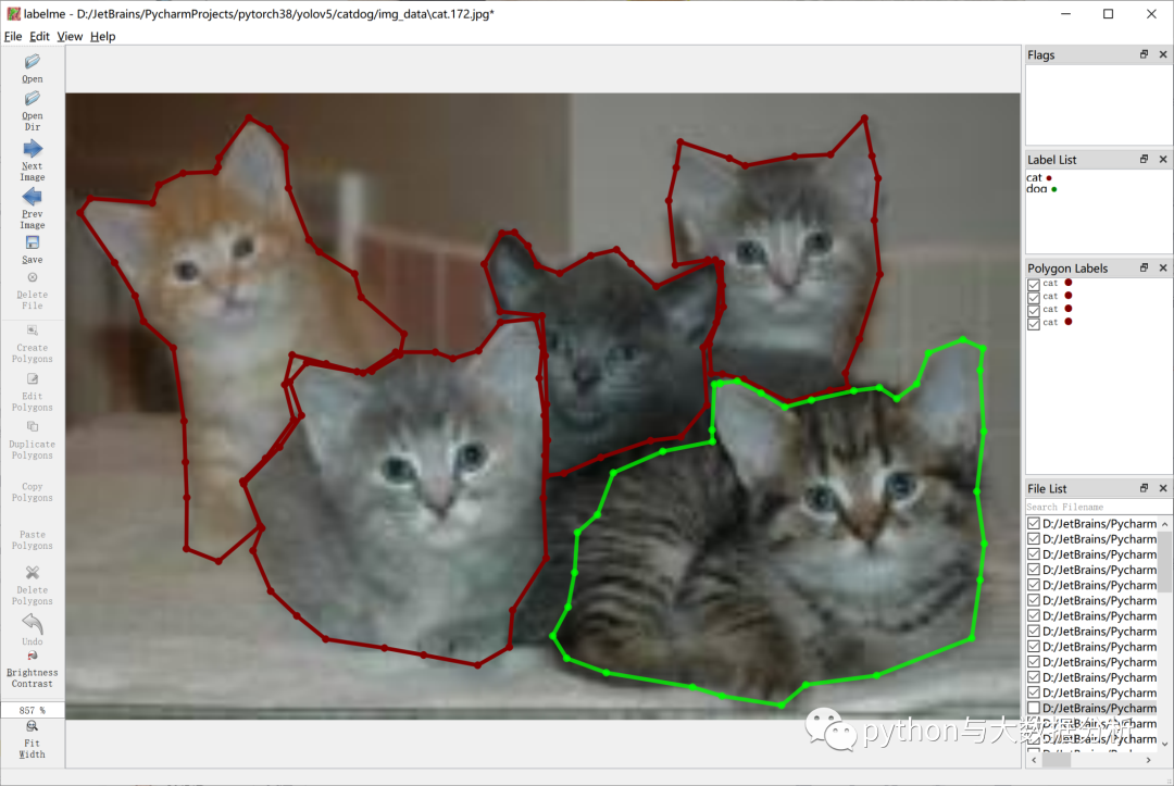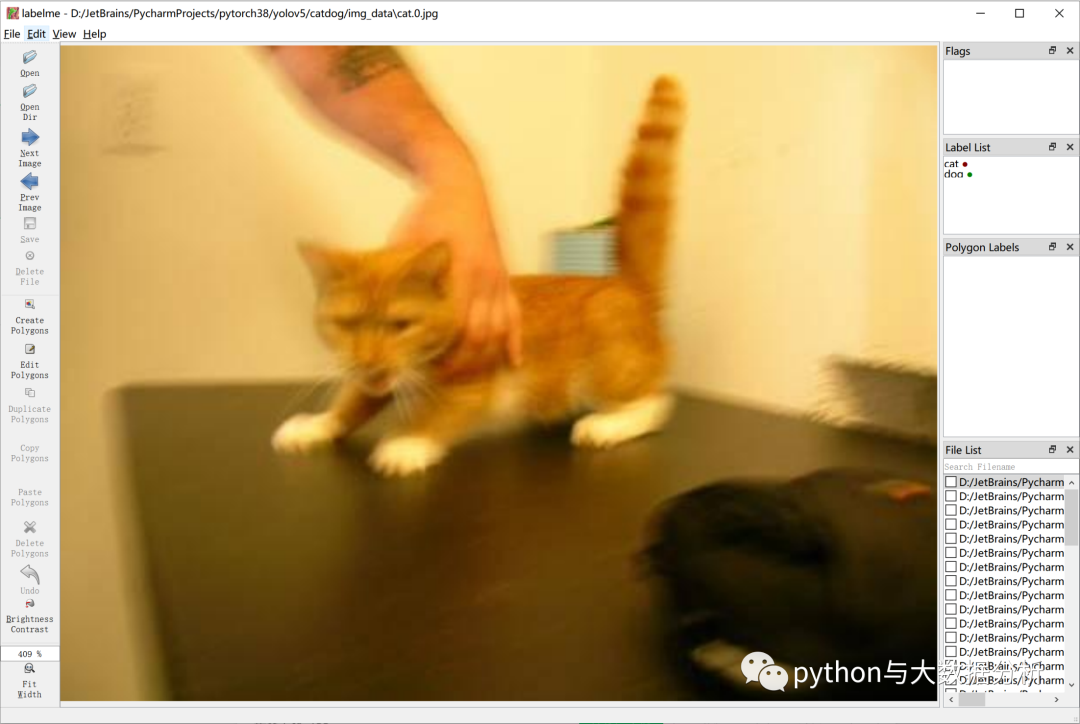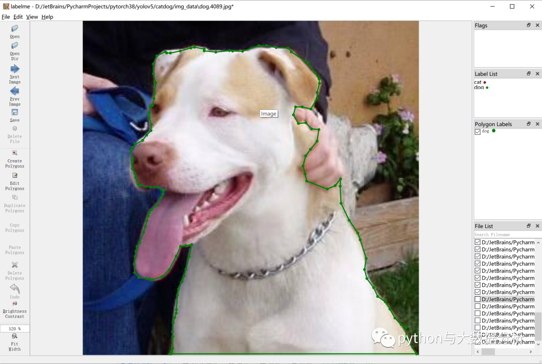 (venv) PS D:\JetBrains\PycharmProjects\pytorch38\yolov5\catdog> labelme --labels label.txt