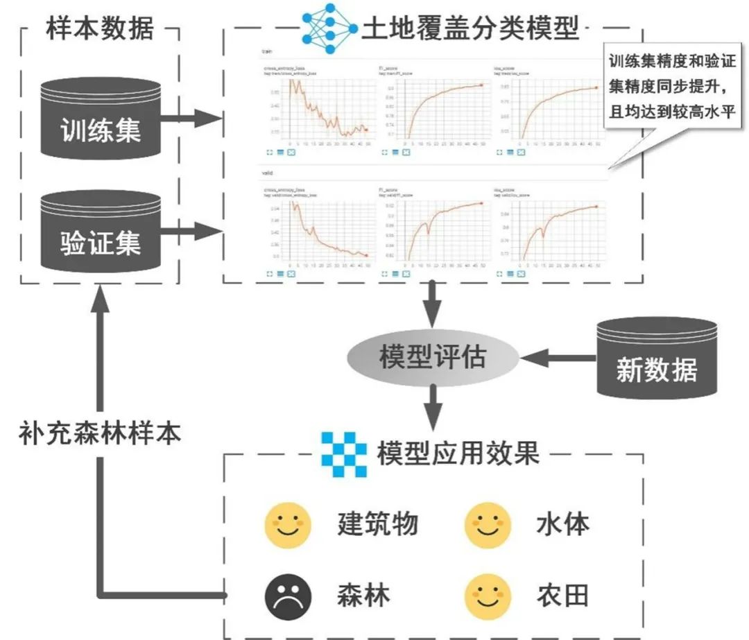 例如在遥感影像土地覆盖分类任务中,可能出现在训练数据上的精度已达到较高水平,而模型评估时发现模型对新数据中某一类地物的分类效果较差的情况。此时可针对该类地物补充更多的样本数据,重新进行训练,从而提高模型的泛化能力。