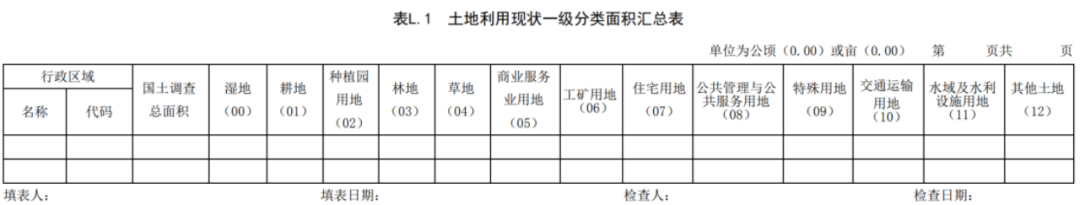 通常国土调查统计报表主要有标准报表、流量报表以及专项报表三个类型(部分表格统计要求如下图所示):标准报表是国家要求的标准模板报表,流量报表主要指土地利用变化平衡统计表,专项报表是专项数据与其他图层进行叠加分析后进行统计的报表——此类报表需求频繁、统计类型灵活多样,是汇总统计工作中较为复杂的任务。