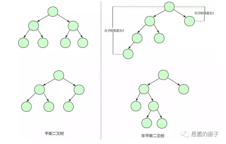 平衡二叉树又称 AVL 树,在满足二叉查找树特性的基础上,要求每个节点的左右子树的高度差不能超过1。当我们插入或删除数据导致不满足平衡二叉树不平衡时,平衡二叉树会进行调整树上的节点来保持平衡。相比于二叉查找树来说,平衡二叉树查找效率更稳定,总体的查找速度也更快。