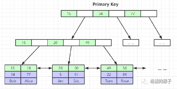 2、B+ 树索引的所有数据均存储在叶子节点,而且数据是按照顺序排列的
