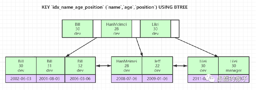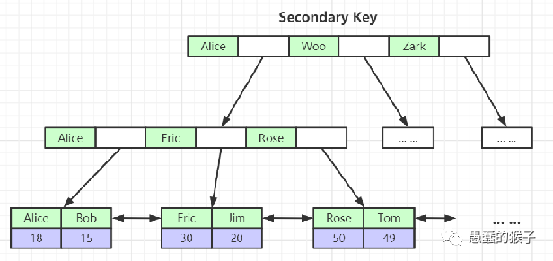 2、非聚集索引(Secondary Index)也叫辅助索引、二级索引、非主键索引。他的显著特点是叶子节点不包括完整的行数据,而是包含行记录对应的主键key。