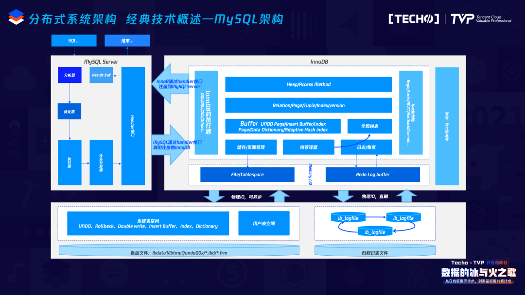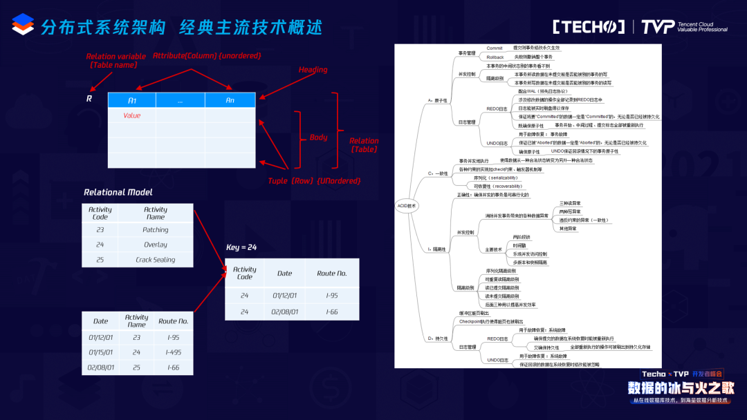 前述这些技术,是数据库的经典技术,无论单机数据库还是分布式数据库,都基于这些基础性的技术。虽然TDSQL是一个分布式数据库,但里面90%甚至更多的基础核心功能来自于单机数据库系统,所以技术的演进其实是踏着前面的基础而不断演化的,分布式数据库的技术离不开前面我们谈到的关系模型、事务处理等基础技术。因此我认为做分布式数据库离不开单机数据库系统,认识分布式数据库要先从单机数据库系统入手,单机数据库系统实际上就有了分布式数据库的五脏六腑,它已经比较全面。只是分布式数据库在基础技术之上,因系统架构的变化,有了一些新挑战。