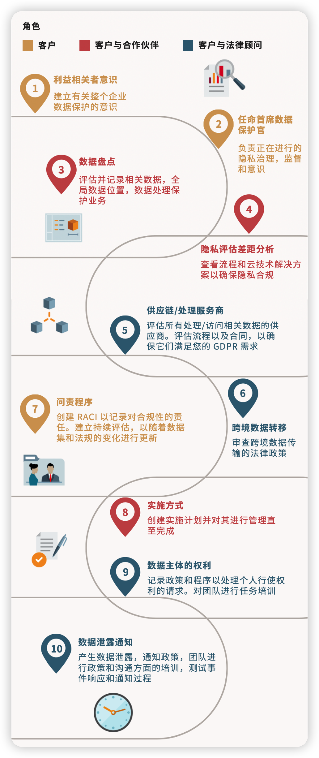 GDPR 看似是复杂,充满挑战的数据监管政策,但见仁见智,企业也可将其视为重塑数据治理的契机,带来合规、良好的数据治理以及高效运营多赢成效。Oracle 总结了应对 GDPR 的十大战略性步骤: