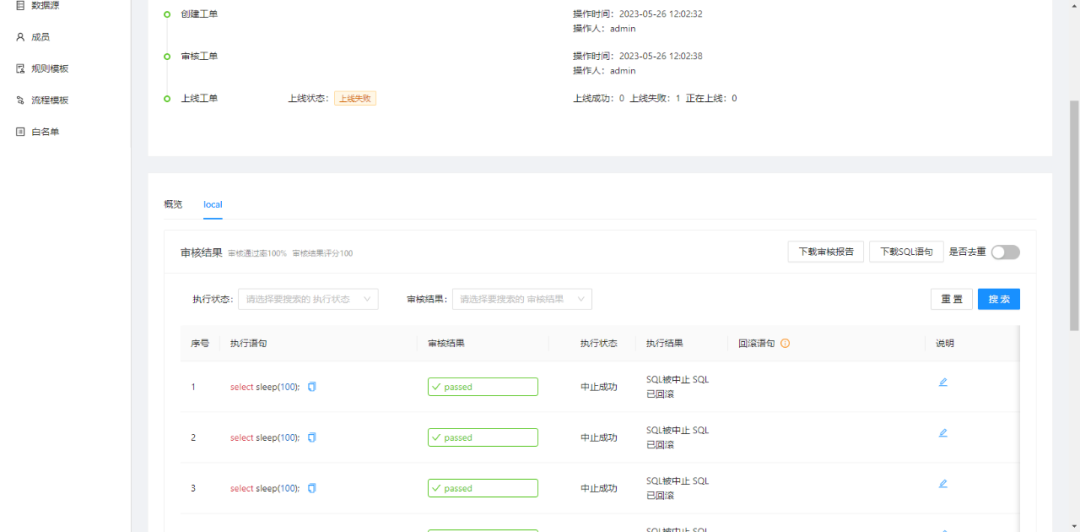 本期在审核环节新增了对 PostgreSQL 数据源的回滚语句支持,方便 DBA 执行线下回滚操作。以下是一个简要的示例: