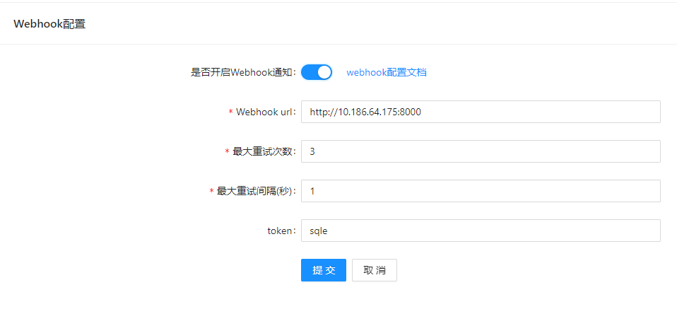 3. 点击提交,保存当前 Webhook 配置。