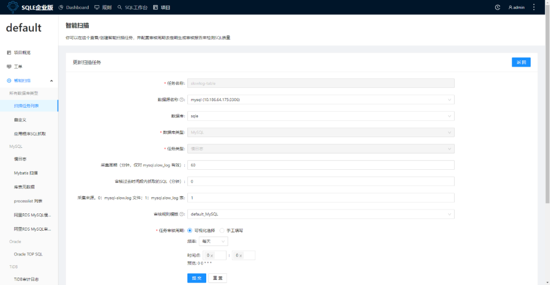 若来源设为 1:该扫描任务将通过 SQLE 直接对实例的 mysql.slow_log 表进行查询